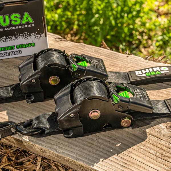 Your ratchet straps are built tough, but they’re not invincible. After a trip, inspect them for cuts, frays, or rust on the ratchet mechanism. Clean off mud or sand with a damp cloth—grit can wear down webbing over time. For retractable straps like Rhino USA’s, let them air-dry fully before retracting to avoid mildew. Store them coiled or retracted in a dry gear bag, ready for the next adventure. A little TLC keeps them trail-ready for years.
